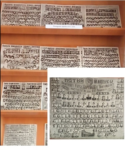 Экспозиция дополнена фотографиями первых выпусков учительского, а затем и педагогического института, книгами преподавателей поколения 40-60-х, первыми книгами, с которых начал формироваться фонд библиотеки университета. Принимаем заявки на групповые экскурсии, звоните, приходите! т. 21 70 68
